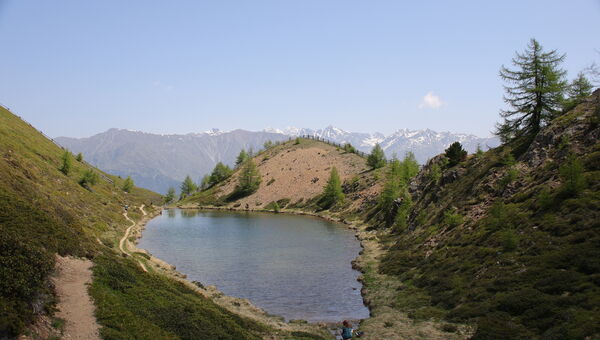 Zunächst geht es durch schöne Seen bei Prad und dann der Etsch entlang aufwärts.