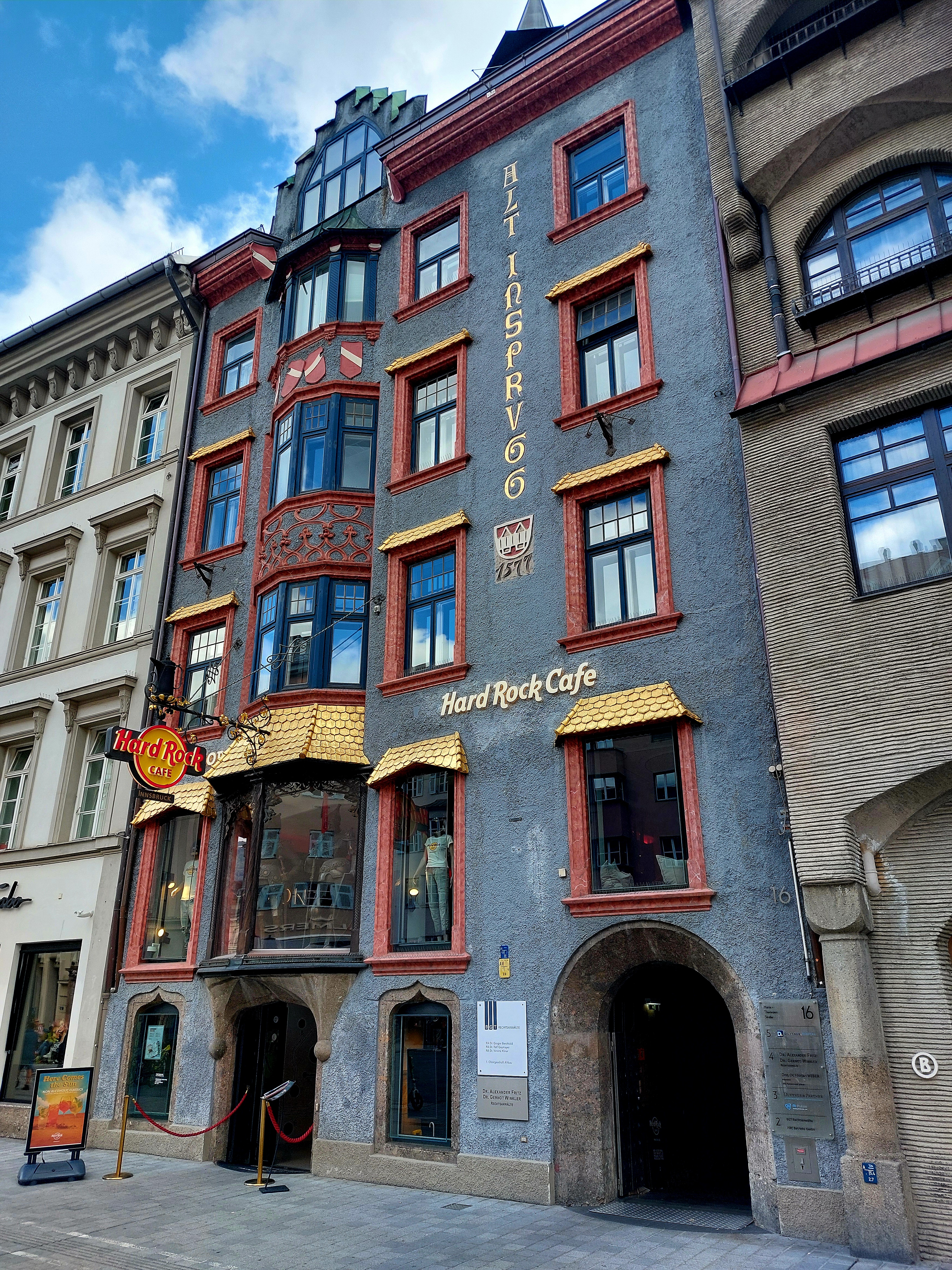 In Innsbruck trinken wir einen Cappuccino und überlegen, wo wir übernachten. Die Campingplätze sind entweder in der Stadt und wohl sehr laut, die anderen zwar grob auf unserer Fahrtroute, jedoch außerhalb, wo weitere Höhenmeter auf uns warten würden - die wir dann morgen auch nochmals teils zurückfahren müssten. Wir finden eine Übernachtung in einem nahegelegenen Café, nicht weit vom Goldenen Dachl. Die Wirtin knöpft uns 110 € ab und weist darauf hin, dass zum „Bed & Breakfast“ kein Breakfast mehr gehört - schon seit Corona. Schade, denn, das war früher wirklich gut im Café Munding.