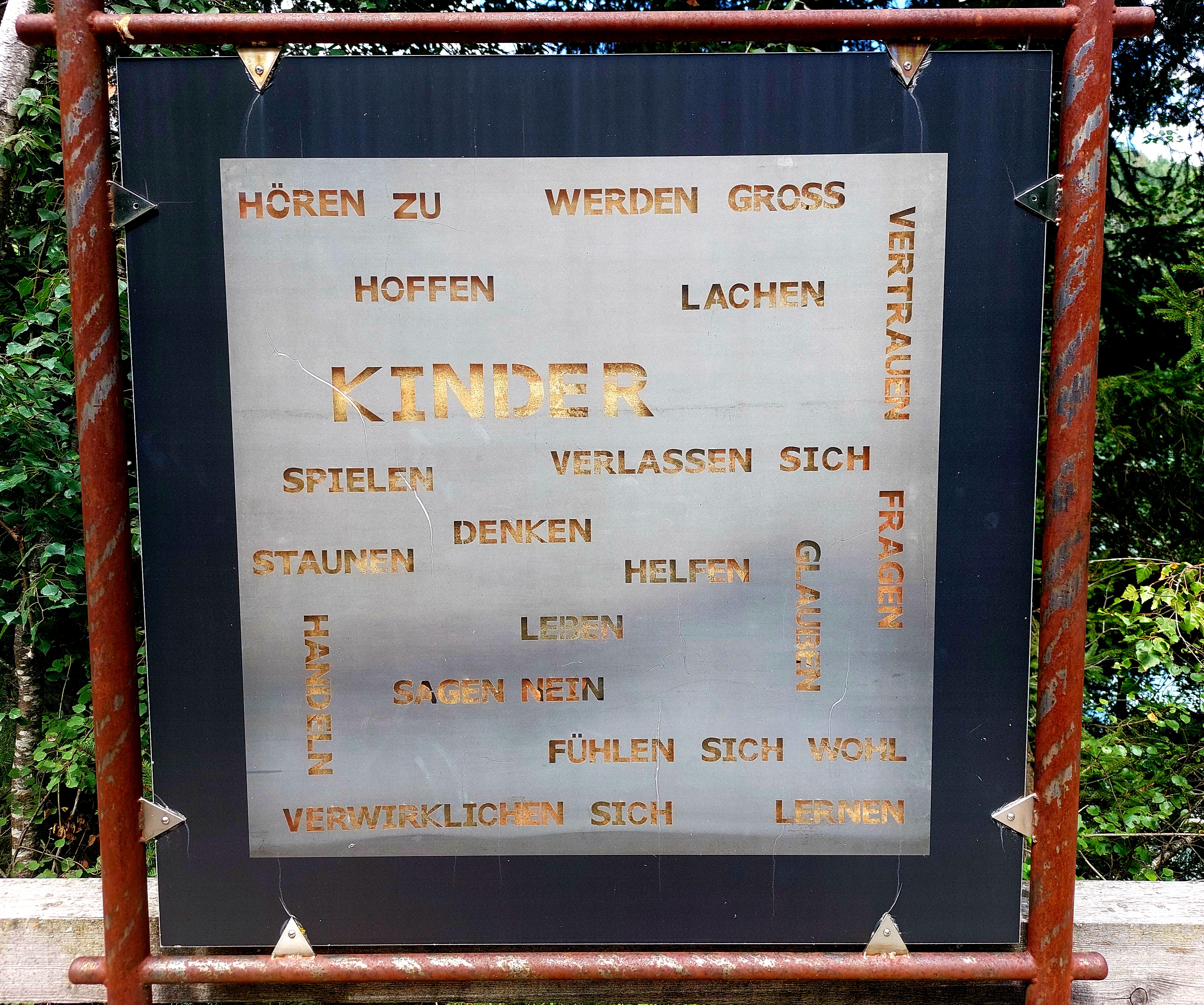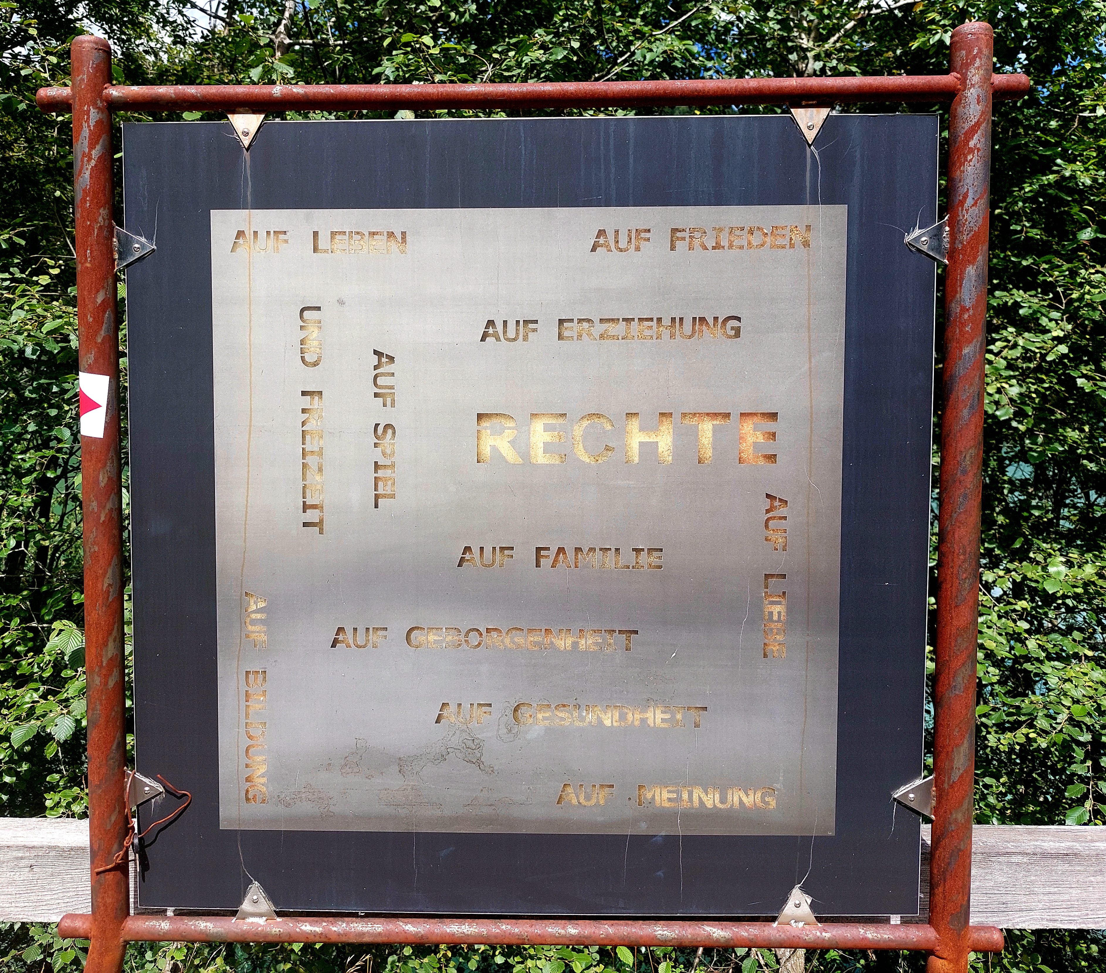 Und - am Olang-Stausee gibt es Tafeln mit den Kinderrechten, zunächst drei Tafeln: